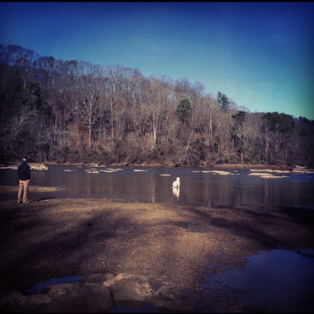 This morning we took Scout to a park on the Chattahoochee, where he could run around and chase after sticks into the water. It was a beautiful day, and he had a ball.